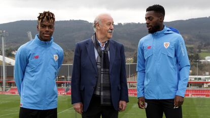 Lezama crece en calidad y cantidad para el orgullo de los que la vieron nacer y expandirse y de los que ahora la disfrutan con el sueño de triunfar algún día en el Athletic. Allí, junto a las dos penúltimas perlas canteranas, los hermanos Williams, Iñaki (Bilbao, 27 años) y Nico (Pamplona, 19), se acomoda la leyenda de las leyendas, José Ángel Iribar, y los que sacan el día a día con muchas horas de ‘currelo’, como ellos dicen: Rafa Alkorta, Santi Urquiaga, el incombustible Blas Ziarreta, Ayarza, Patxi Salinas… Vicente del Bosque atiende las explicaciones del anfitrión, el presidente, Aitor Elizegi, mientras el entrenador, Marcelino García Toral, se deshace en elogios sobre las excelencias logísticas de su centro de trabajo y las joyas, Iñaki y Nico, se disponen a charlar con el exseleccionador con el mítico arco de San Mames como testigo estelar.