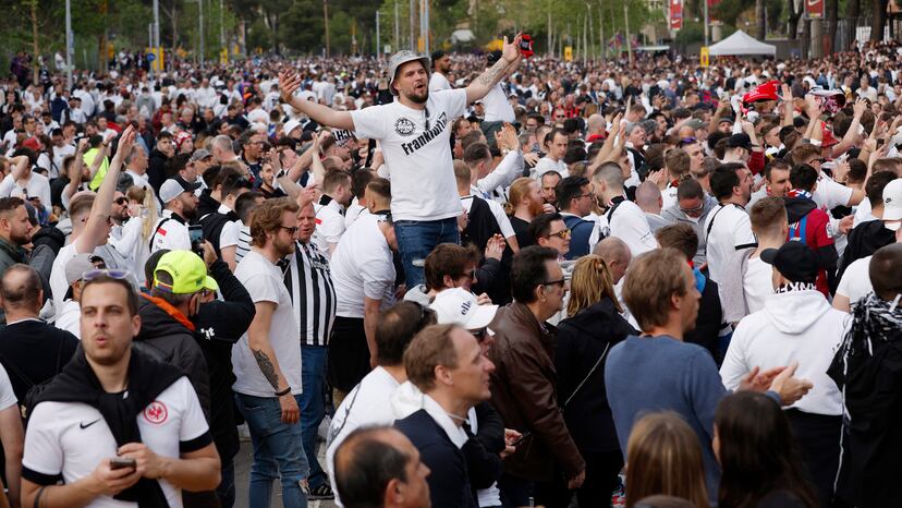 Es la primera vez que el Eintracht de Fráncfort vista el Camp Nou y los aficionados del equipo alemán se desplazaron en masa hasta Barcelona para apoyar a su equipo. Entre 25.000 y 30.000 hinchas del Eintracht, según fuentes policiales, se hicieron notar a lo largo del jueves en la capital catalana, lo que provocó incluso atascos en las arterias próximas al estadio azulgrana, que tuvieron que ser parcialmente cortadas dentro del dispositivo de control de los s...