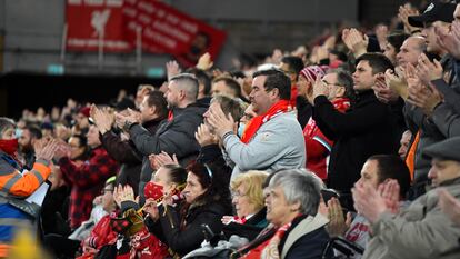 A los siete minutos de acción los 50.000 aficionados que llenaban Anfield se pusieron de pie para homenajear a Cristiano Ronaldo. El portugués se había perdido el partido tras anunciar que el hijo que esperaba su mujer había fallecido. La afición cantó a coro You’ll Never Walk Alone en un acto oficioso pero solemnísimo. Cristiano, el archirrival, no olvidará nunca esta demostración espontánea de afecto.