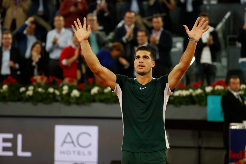 Alcaraz, que juega por primera vez con la vitola de top-10, vuelve a la central madrileña por todo lo alto después del breve paso del año pasado, cuando venció a Adrian Mannarino en la apertura y después chocó con la inmensidad de Rafael Nadal el día que celebraba la mayoría de edad. Sucedió de tarde, con luz natural. Ahora reaparece bajo los focos, con la pista techada y el duelo comienza a las 22.50; se prolonga una jornada maratoniana que congrega a 10.000 asistentes y que finaliza a las 00.13 y con fortuna, cuando la bola toca la cinta, sella el acceso a la siguiente ronda –frente a Cameron Norrie o John Isner, citados este miércoles– y se entrega al calor de la grada, brazos en alto.