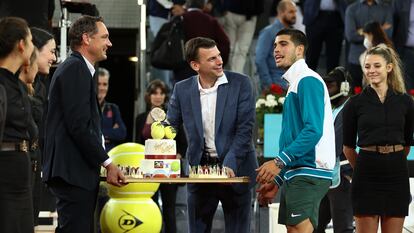 La historia del tenis está plagada de casualidades, giros copernicanos y caprichos, y reincide ahora en forzar un reencuentro. Un año y un día después de que se cruzaran por primera vez sobre la arena de Madrid, Rafael Nadal y Carlos Alcaraz medirán este viernes sus fuerzas (16.00, La 1) en el mismo escenario del enfrentamiento primigenio, que tuvo continuidad el 19 de marzo en Indian Wells y vuelve a lucir con letras de oro en el cartel de la Caja Mágica. El rey contra el príncipe, casi 17 años de diferencia entre uno y otro —el primero celebrará el 3 de junio los 36; el murciano festejó este jueves los 19—, y numerosos interrogantes en el ambiente. En cualquier caso, el duelo más apetecible hoy día.