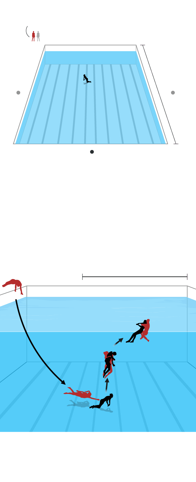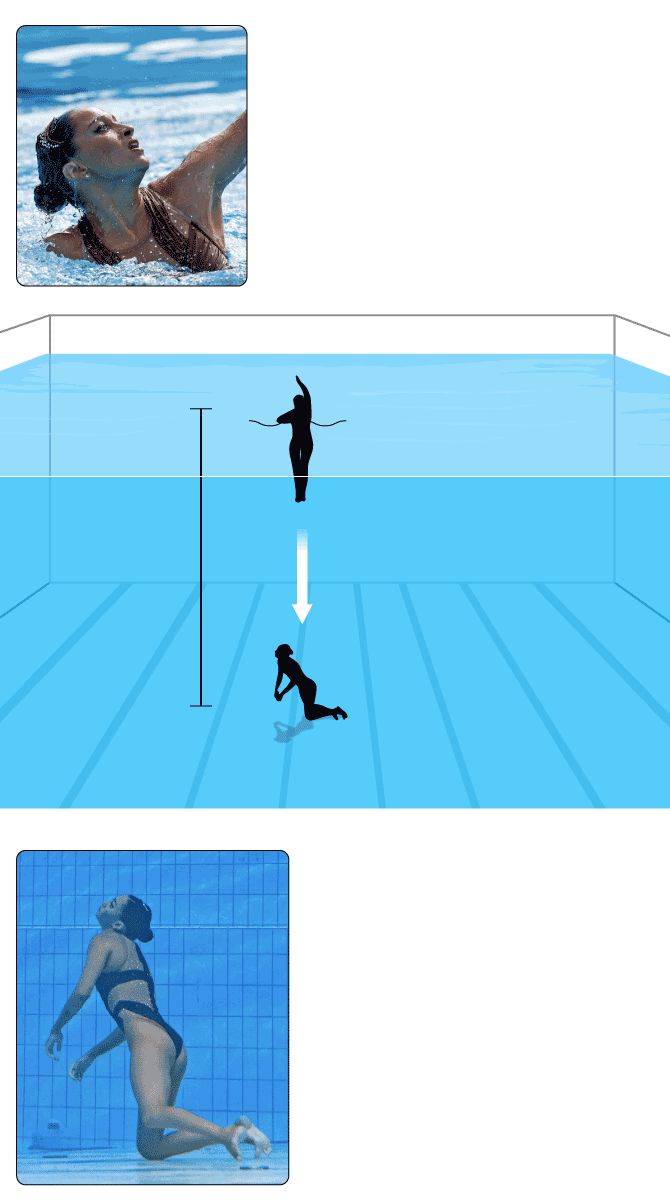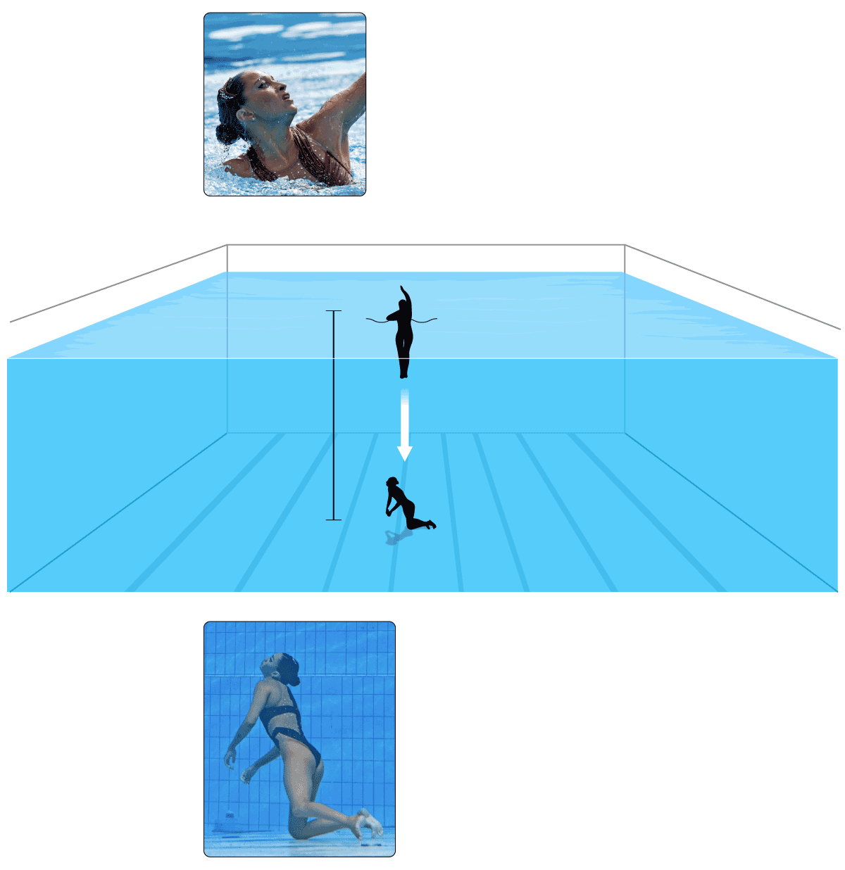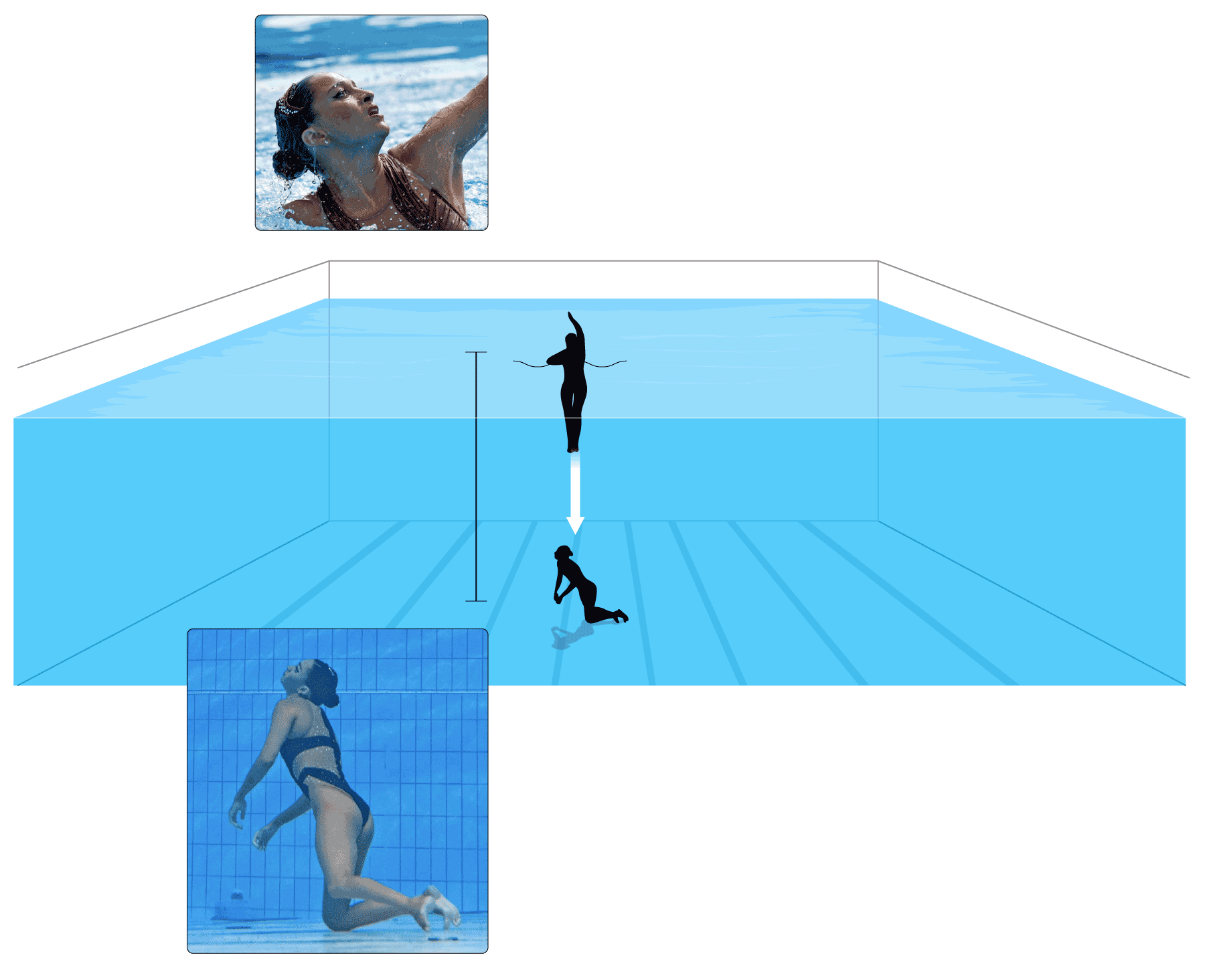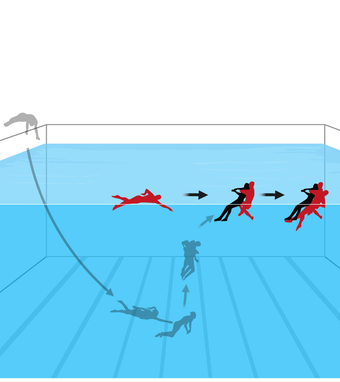 Al finalizar, pierde el conocimiento y se hunde hasta el fondo de la piscina olímpica de 2,7 metros de profundidad.