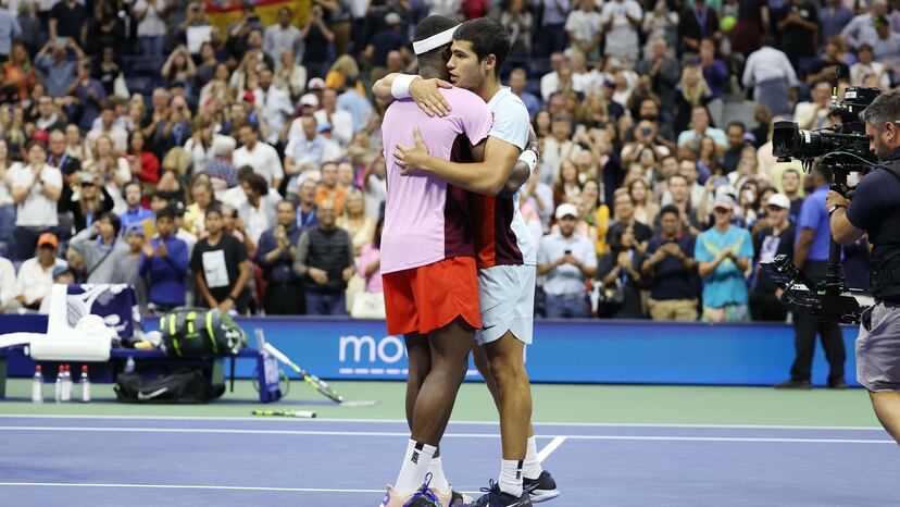 El murciano, 19 años y cuatro meses, resiste a una embestida eléctrica —tercera victoria maratoniana en seis días, Marin Cilic y Jannik Sinner antes— y se convierte en el tenista más joven que desembarca en la final de un grande desde Rafael Nadal, 19, también en la de Roland Garros 2005. Su nombre luce junto con el del mallorquín (5), Juan Carlos Ferrero, Arantxa Sánchez Vicario (2), Manolo Orantes y Santana. Distintivo ilustre, acompañado de otro rastro de precocidad, al situarse al lado de Pete Sampras (19 años y un mes en 1990) como el segundo más precoz en la final de Flushing Meadows. La velada, de aquí para allá y de allá para aquí, lleva la rúbrica en forma de abrazo.