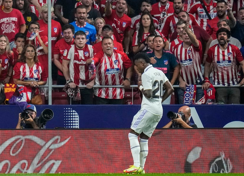 En su escrito, la patronal se refirió también al “Vinicius, muérete” que se pudo escuchar en dos momentos distintos, en los minutos 12 y 42, desde el fondo sur, la zona donde se sitúa el grupo ultra del conjunto rojiblanco, el Frente Atlético. Y el cuarto incidente relativo al extremo brasileño que captó la entidad denunciante tuvo lugar en el 79, tras el intento fallido de lambretta, cuando se oyó “tonto, tonto” desde diferentes zonas de la grada y de forma “no organizada”.