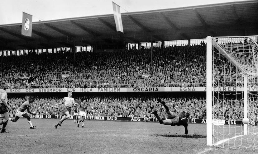 Pelé llegó al Mundial de Suecia como suplente. Su puesto correspondía a José Altafani, un italo-brasileño que dejó una gran huella en el calcio (Nápoles, Milan, Juventus, Torino), donde era apodado Mazzola porque evocaba al gran Valentino Mazzola, estrella del trágico Torino que se estrelló en Superga en 1949. Al tercer partido de la cita escandinava ya desfiló Pelé como titular y marcó en los tres que quedaban, contra Gales, Francia y Suecia. En total, seis goles en cuatro partidos. Sus lágrimas tras ganar la final a la selección anfitriona, con un doblete suyo, simbolizaban a un niño extasiado en una cima mundial. Y qué niño. El primero de los dos goles que selló en la final fue antológico. Recibió un centro de Zagallo —que sería su seleccionador en el Mundial de México de 1970, la obra cumbre de Brasil, la apoteosis del mejor equipo de la historia—, tiró dos sombreros, el primero con un do de pecho y embocó. Glorioso.
