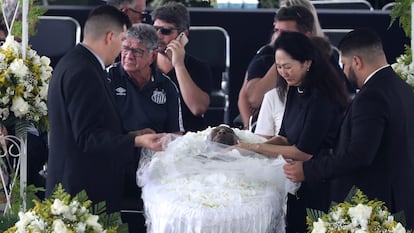 Brasil se despide este lunes de ‘O Rei’ del fútbol. El homenaje a Pelé ha comenzado esta mañana en el estadio del Santos Fútbol Club, donde pasó gran parte de su carrera profesional. Los restos de Edson Arantes do Nascimento, que falleció el pasado 29 de diciembre a los 82 años a causa de un cáncer de colon, serán velados en una ceremonia que durará hasta el martes a las 10.00 de la mañana (hora local). Además de su familia, y grandes figuras del mundo del deporte, se espera la llegada de miles de fanáticos para dar el último adiós al legendario futbolista. Tras el velatorio, hay prevista una procesión por las calles de Santos, hasta llegar al mausoleo de la ciudad, donde se realizará un entierro privado para la familia.
