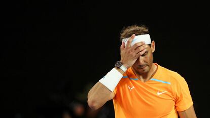Nadal, de 36 años, sufrió un fuerte pinchazo en la zona púbica cuando hizo un desplazamiento lateral por el fondo para intentar devolver la pelota. En ese instante, su musculatura se resintió y a partir de ahí, cuando había cedido ya el primer set e iba por detrás en el segundo, 4-3, tuvo que competir de mala manera porque perdió la movilidad y tampoco podía emplear el revés. El español continuó en la pista, pero finalmente no pudo revertir la situación y fue eliminado del torneo australiano, que conquistó en 2009 y el curso pasado.