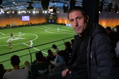 En la pista, sobre un cuidado manto de césped artificial, el fútbol. Siempre hubo fútbol en nuestras vidas. Fútbol —el de toda la vida, de 11 contra 11—, fútbol sala, fútbol 7, partidillos de solteros contra casados, ligas de empresa… Este de la Kings League es poco más que una pachanga. No tiene el pim pam pum ni las paredes del fútbol sala; tampoco las transiciones o los cambios de orientación que uno puede ver en LaLiga; pero que el campo sea pequeño ofrece otros alicientes: una velocidad de juego mayúscula y la facilidad para el contrataque rápido. “Aquí los jugadores van con mucha intensidad, tienen mucha técnica y un buen uno contra uno”, explica Joan Capdevila, exfutbolista y una de las estrellas de la competición.