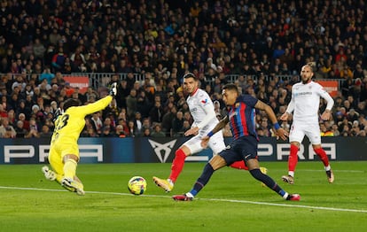 Aunque hubo un buen rato de fútbol, sobre todo por la intensidad, el Barça perdió poco a poco fluidez porque Kessié no es precisamente Busquets. Pedri se juntó con De Jong en el ombligo del campo mientras Gavi barría el frente de ataque desde la izquierda hasta el punto de penalti en un equipo desplegado a partir de tres centrales (3-4-3). La contienda se fue apagando por las limitaciones barcelonistas y por el plan de contención del Sevilla. Al Barça, dominador y perseverante, le faltaba un pasador y puede que también un delantero diferente para descerrajar al empequeñecido Sevilla.