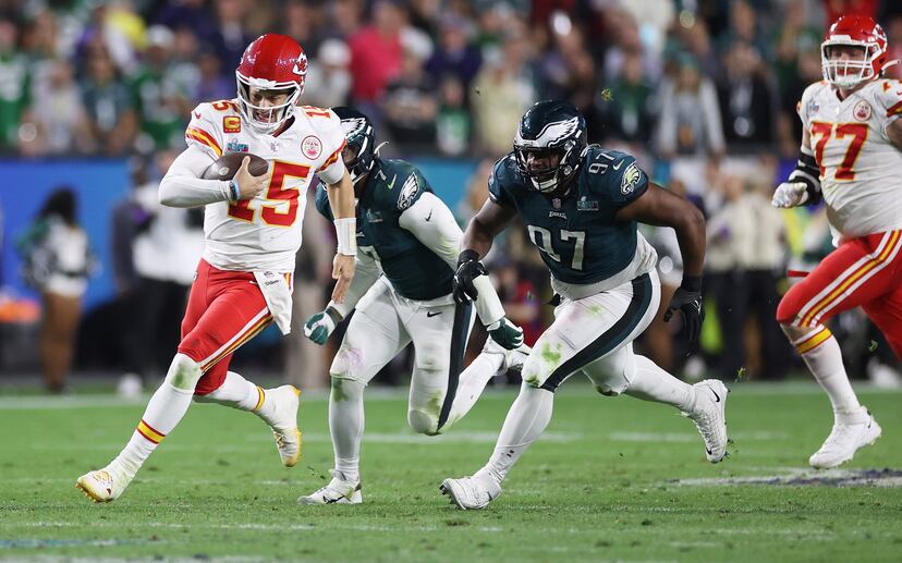Esa movilidad tiene sus contras, porque un quarterback es el jugador más frágil en una jungla de depredadores. El tobillo derecho de Mahomes ha amenazado la temporada de los Chiefs desde semifinal de conferencia. Jugó cojeando la segunda parte, aguantó renqueante una semana después y amagó con recaer en la primera parte de la Superbowl. Pero, la jugada que decidió la final fue una carrera suya que plantó a su equipo en la yarda 18 de los Eagles en la última posesión.