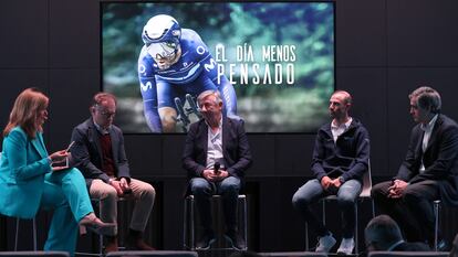 “Somos los auténticos”, dice José Larraza, el creador de El día menos pensado, la serie documental de cámara empotrada que narra la peripecia del equipo Movistar en la temporada ciclista. El indisimulado orgullo de pionero con el que lo afirma está plenamente justificado. La serie inventó un género. Abrió una vía, como lo hacen los grandes alpinistas, por el que han transitado después múltiples imitadores. La cuarta temporada (cuatro capítulos de 40 minutos para contar la retirada de Alejandro Valverde a los 42 años, las vicisitudes, caída y resurrección de Enric Mas, el año pleno de victorias de Annemiek van Vleuten y la lucha del equipo para evitar el descenso del WorldTour en 2022) se emite en Vamos, de Movistar Plus, en sesión maratón el lunes 27 de marzo.