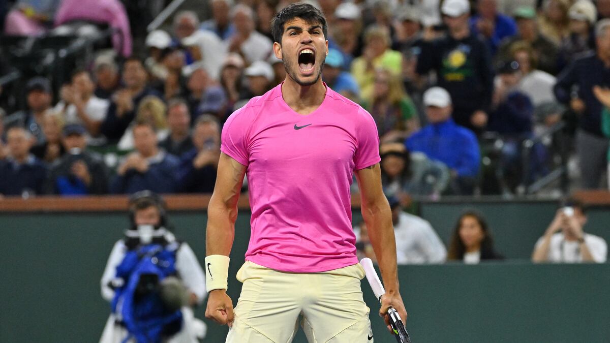 La vida pirata es la vida mejor, predica Carlos Alcaraz con ese tenis de rompe y rasga, permanentemente al abordaje el español para desasosiego y desesperación de sus rivales. Le toca esta vez a Félix Augger-Aliassime, hasta ahora un muro infranqueable, enquistado, 3-0 a su favor pero derribado finalmente con un ejercicio de demolición soberbio: doble 6-4, tras 2 horas. Es decir, el de El Palmar se saca la espinita, resuelve una asignatura pendiente y desembarca pletórico en las semifinales de Indian Wells, en las que chocará este sábado (hacia las 23.30, Movistar Deportes) con otro talento natural, de cuño italiano aunque de perfil más bien nórdico; más científico, menos virtuoso, pero igualmente un portento. Su nombre es Jannik Sinner, verdugo del último campeón en California, Taylor Fritz (6-4, 4-6 y 6-4).