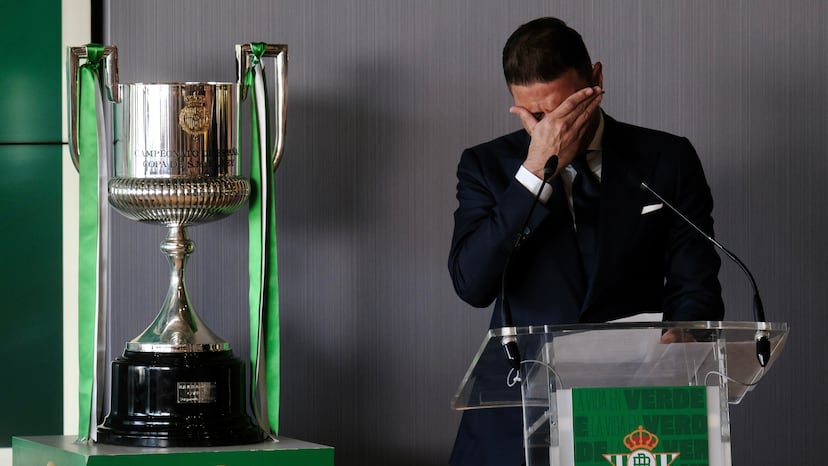 Joaquín, que había hecho el anuncio un día antes a través de las redes sociales, no paró de llorar. Ni en su discurso, ni cuando luego, ante los periodistas que han seguido toda su carrera, confesó su secreto más íntimo. “No me retira el físico. Me siento muy bien con 41 años. Lo ha hecho mi cabeza y una voz interior que me dice que es el momento adecuado de hacerlo. No estoy aburrido ni he dejado de sentirme futbolista, pero esa voz interior me decía que era el momento”, aclaraba la leyenda del Betis, el único en la historia del club en conseguir dos títulos, la Copa del Rey de 2005 y la de 2022. Ambas flanqueaban al legendario capitán, muy elegante con un traje azul marino y una corbata cuyo nudo le complicó, por momentos, su alocución. Un capitán que también expresó sus inquietudes: “Me da miedo echar de menos más de la cuenta el fútbol. Me da algo de pavor no volver a oler a hierba, a bota, ese vestuario con los compañeros, todos esos momentos de intimidad en la caseta”, explicaba Joaquín.
