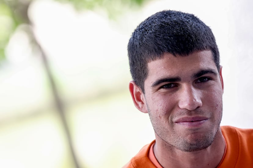 Carlos Alcaraz se aproxima lentamente por una zona reservada de la Caja Mágica hasta que acaba envuelto por medio centenar de reporteros. A un costado, la encargada de la ATP de oficiar el encuentro y al otro, su inseparable agente, el hombre que moldea el esplendoroso presente del tenista y su jugoso porvenir. El murciano aterriza en Madrid después de lograr su segundo trofeo en Barcelona y durante las dos próximas semanas ejercerá la defensa del título logrado hace un año, con la posibilidad de regresar a lo más alto del ranking si vuelve a triunfar en el barrio de San Fermín y después desfila por Roma.