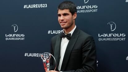 Poco más de 24 horas han pasado desde que Carlos Alcaraz se alzó con el triunfo en la final del Masters de Madrid y el murciano vuelve ser reconocido por su esfuerzo esta noche en Paris. El tenista se ha llevado el Premio Laureus a deportista revelación del año después de ganar el último US Open y proclamarse el número uno más joven del mundo. El triunfo de Alcaraz ha quedado mínimamente ensombrecido en la noche en que Leo Messi ha sido reconocido doblemente, por él mismo, como mejor deportista y con la selección de Argentina, como mejor equipo.