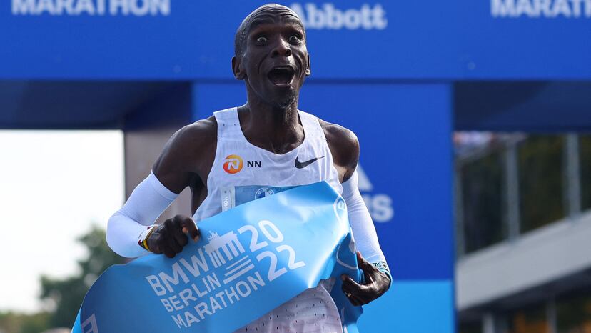 Ha disputado 20 maratones. Ha ganado 17 (diez de ellos, majors: Chicago, 2014; Londres 2015, 2016, 2018 y 2019; Berlín, 2015, 2017, 2018 y 2022, y Tokio, 2022). Solo le faltan Boston y Nueva York para conseguir un grand slam imposible, y, además, corrió dos maratones extraoficiales organizadas para él con el fin de que saciara su sed de imposibles, pues le apremia el tiempo, y para la humanidad, para que todos sigamos pensando que el progreso no tiene límites. Fueron sus dos asaltos a las dos horas. En el circuito de Monza, en 2017, se quedó cerca, 2h,25s. En la segunda, lo consiguió. Fue en el Prater de Viena, el 12 de octubre de 2019, un coche generando rebufo y disparando un rayo verde delante de él, la luz que le marca el ritmo, 2m,51s cada kilómetro, 17,2s cada 100 metros, sin descanso, y varios atletas turnándose como liebres, avituallamientos a la carta, zapatillas último modelo, y una marca de 1h,59m,40s.
