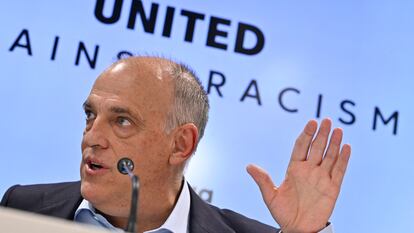 El presidente de la Liga ha insistido en la necesidad de tener herramientas para sancionar las conductas racistas y está a favor de la pérdida de puntos