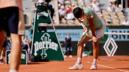 Mal sabor de boca en el Bois de Boulogne, este viernes de bochorno. Es un crío. “No puede ser”, lamenta el murciano en el instante en el que termina el sueño. “No puede ser, tío”, le dice a su preparador el número uno. “No es solo aquí, es aquí y aquí y aquí”, le transmite al fisio. “Me voy a dar una oportunidad…”, le dice a la jueza de silla, Aurélie Tourte, quien en actitud casi maternal, le precisa que si detiene el desarrollo pierde el juego y que después, cuando el chico (20 años) ya ha sido atendido, decide exclusivamente él. Sigue Alcaraz, pero acaba este asalto a París y el viejo orden (de momento) prevalece. Otro accidente. En enero fue el abdominal (antes de viajar a Australia); en marzo (en Río de Janeiro), una pierna; el curso pasado, otro percance en el core (noviembre, París-Bercy) y ahora el físico (castigado por la tensión) vuelve a frenarlo en un momento delicado, cuando había conseguido equilibrar un episodio de máxima exigencia con el veterano tótem de los Balcanes, 16 años mayor.