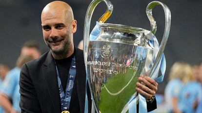Guardiola solo pudo tomarse el recordatorio del director general con humor. El entrenador español, de 52 años, venía de atravesar uno de los periodos más estresantes de su carrera. Conseguir la primera Champions lejos del Barça, el club que dejó en 2012, no solo le estableció a la cabeza del grupo de nueve entrenadores que consiguieron el triplete —Liga, Copa y Copa de Europa— a lo largo de la historia. Le convirtió en el primero en tener dos tripletes en países distintos y en el único en armar dos equipos revolucionarios. El fútbol nunca fue el mismo desde el Barça de 2008, de igual modo que nunca será el mismo después del City de 2023.