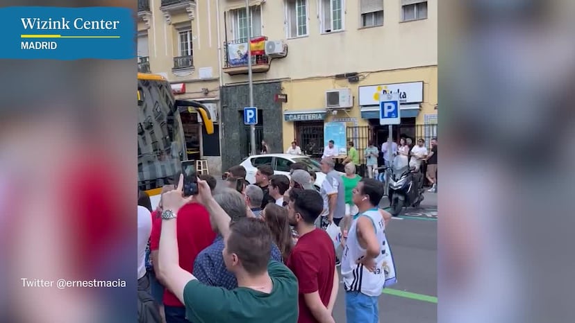 “Hijos de putas”, “perros”, “cabrones”, “¿cuánto habéis pagado los árbitros de hoy?”, “joderos”, fueron sólo algunos de los cánticos que tuvo que escuchar la plantilla del Barcelona a su llegada este martes por la noche al Wizink Center para disputar el tercer partido de la serie de las finales de la Liga ACB. Había un grupo integrado por decenas de hinchas madridistas aguardando al autobús. Que no callaba. Los insultos no cesaron en los minutos que tardaron en bajar y entrar al estadio los jugadores del Barça. También se oyó un “rata apestosa” y James Nnaji, pívot del equipo azulgrana, escuch...