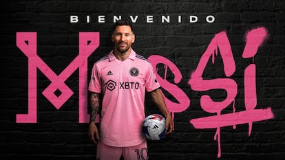 El vídeo, de 40 segundos, lo abre un grafitero encapuchado en un estadio de fútbol vacío. Viste de la cabeza a los pies de Adidas, que, además de ser la marca deportiva a la que cantaban en los ochenta los raperos RUN-DMC, es la patrocinadora del Inter de Miami y de su nueva y rutilante estrella. El tipo bombardea con su espray una superficie negra con el rosa característico del club y, oh, sorpresa, pinta “Messi”. El aludido, astro argentino del fútbol, siete veces ganador del Balón de Oro, emerge de las sombras, y dice: “Sí, muchachos, nos vemos en Miami”.