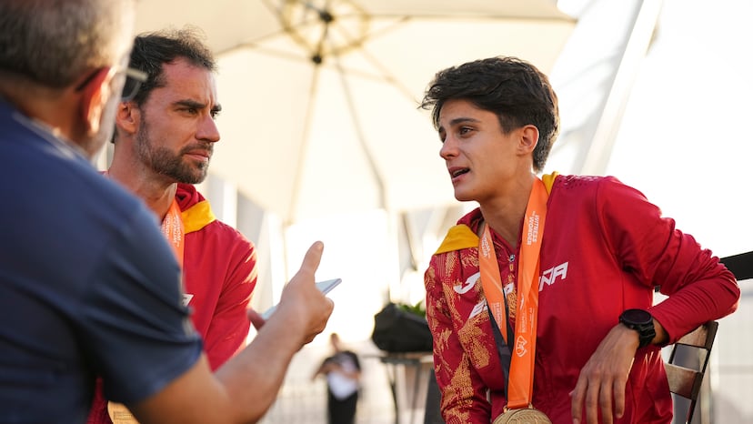 M.P. El último, este Mundial, la transmisión televisiva de World Athletics no dio en directo tu victoria en los 20 kilómetros, la primera final del Mundial... Es un feo a mi disciplina. La primera final, la primera medalla... ¿A que eso no ocurriría en la final de los 100m o en los últimos 100m de un 10.000? Son pequeños feos que te sientes... Joer, vengo a abrir el Mundial... A veces parece que criticamos, reivindicamos, y solo pensamos que nos merecemos un respeto. No pedimos ni queremos nada, y si pedimos siempre es en base a los resultados que hemos tenido. No pedimos más que nadie.