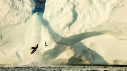 El deportista catalán, un referente mundial de la especialidad, presenta un documental sobre el primer descenso de un glaciar con salto de 20 metros al mar