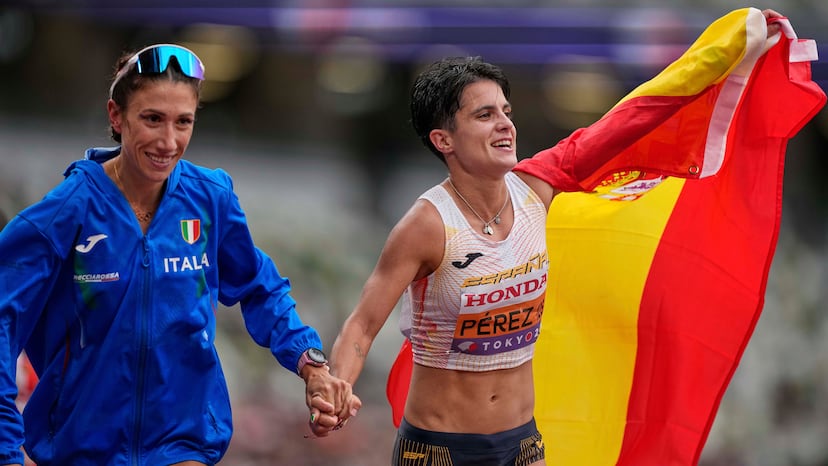 Hay los que hacen de su paso por la vida la historia de una amistad, y los hay de todo, una absoluta categoría a la que se acerca María Pérez, campeona única del atletismo mundial, que entra sola en el estadio, la primera de los 20 kilómetros marcha, un vacío a su alrededor, y sonríe, y su pulso se acelera aún más cuando vislumbra al final de la recta a su amiga y rival italiana Antonella Palmisano, la flor pintona en la cola y el chándal largo. Se ha retirado de la prueba con problemas de estómago, pero antes de ir al servicio no puede resistirse a cumplir con un deber de amistad que se ha impuesto: acercarle una bandera de España a su amiga del alma para que celebre como se debe su segundo título mundial ganado en Tokio, el de los 20 kilómetros siete días después de haber ganado el de 35. Es su segundo doblete mundial, su cuarta medalla de oro tras las dos de Budapest 2023.