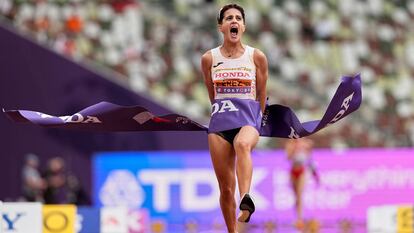 Una aceleración, pura fuerza física, coraje, piernas y pulmones, y una tarjeta amarilla. En el kilómetro 16, María Pérez resolvió bruscamente su duelo con la mexicana Alegna González y marchó imperial de vuelta al estadio olímpico de Tokio, donde consiguió al amanecer fresco y nublado de Tokio --el sol naciente remolón entre las nubes después de una noche de lluvia-- la victoria en la prueba de los 20 kilómetros marcha. Es la segunda medalla de oro de la marchadora de Orce (Granada), ya campeona olímpica en París, en los Mundiales de Tokio después del título de los 35 kilómetros conseguido la semana pasada. Es la cuarta en su historia en los Mundiales tras un doblete similar en los Mundiales de Budapest 2023. A los 29 años, de María Pérez, un portento único, se puede decir sin que nadie diga lo contrario, que es la mejor marchadora mundial de la historia.
