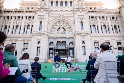 De infierno al cielo, y de Seve a Seve. Jon Rahm pisa esta semana el Open de España convertido en la gran figura de un cartel con más purpurina que nunca: Sergio García, Joaquin Niemann, Shane Lowry, Patrick Reed, Ángel Hidalgo, Josele Ballester… Sobre todos sobresale Rahm después de la histórica victoria con el equipo europeo en la Ryder Cup de Nueva York, un desafío que psicológicamente llevó a los jugadores continentales al límite por el ambiente hostil del público estadounidense. “Mentalmente fue la semana más dura de mi carrera”, expresó este martes Rahm en la presentación del campeonato nacional en la Plaza de Cibeles junto a Ángel Hidalgo, el campeón defensor en el Club de Campo Villa de Madrid, precisamente tras ganar un desempate el curso pasado a Rahm.
