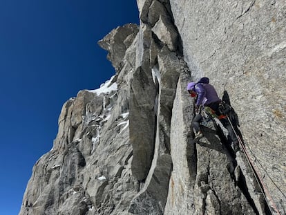 La vida de la alpinista inglesa cambió cuando decidió alterar radicalmente su rutina. Tras una década trabajando como analista de datos en Londres y Nueva York, lo aparcó todo y se mudó a Chamonix, buscándose. Había empezado a escalar y a esquiar en serio bien entrada en la veintena, con lo que sentía la necesidad apremiante de correr en busca del tiempo perdido. Hace tres años, a los 35 años, entró a formar parte del equipo de atletas de The North Face: por vez primera podía vivir solo para el alpinismo.