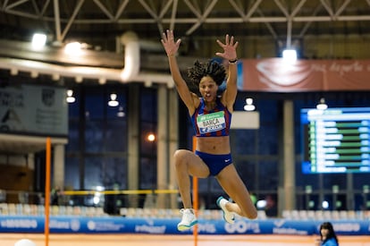 Yulimar Rojas salta en el Palau Luis Puig de Valencia, en una imagen cedida por la Federación de Atletismo.Daniel Meumann