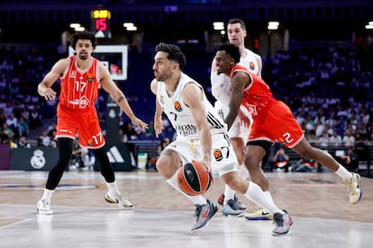 Campazzo retomó el hilo donde lo había dejado, con su quinto triple de la noche, y Okeke seguía agigantado, sobre todo en el rebote ofensivo, para cubrir el vacío de Tavares. En el Hapoel levantaba la voz Chris Jones, huérfano el conjunto dirigido por Itoudis de una gran estrella como Bryant. También se rebelaba Oturu en una de sus mejores actuaciones. Scariolo apretaba las tuercas desde la banda porque adivinaba cierta relajación después de un primer tramo de encuentro muy enchufados. No hizo falta más. El conjunto blanco volvió a apretar la mandíbula y la pareja Campazzo-Feliz le concedió el control del partido necesario para rematar la faena. A campo abierto, Hezonja disfrutaba para exhibir su batería de recursos técnicos y su potencia física. Cualquier amago del Hapoel de meterse en el encuentro era sofocado de inmediato (70-55 antes del último asalto).