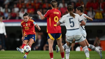 Tomé cambió a Mariona y a Olga y dio carrete a Athenea y a Leila. La entrada de la extremo del Madrid mandó de vuelta a Pina a la izquierda. El juego empezó a fluir más rápido y España logró al fin descorchar el marcador con la maniobra formidable de Aitana y la definición de Athenea. El gol dio mucha calma a la Roja, ya sin la presión de adelantarse ante un rival a priori inferior. El equipo siguió instalado en campo contrario con todo el control del balón, sin que Suiza le hiciera daño a la contra, y volvió a ver puerta en una maniobra típica de Pina en la frontal. La extremo controló, se giró y estampó el balón en la escuadra izquierda de Peng con una facilidad impresionante.