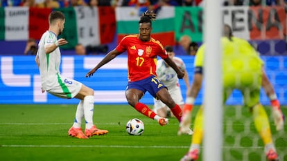 El clásico de Europa, que tantos cambios de tendencia ha visto nacer, que tantas frustraciones ha dejado, tantas cuentas pendientes, se desarrolló en el corazón de la cuenca del Ruhr como un monólogo de España, que cabalgó sobre una exhibición de un Nico Williams desbocado, sí. Y sin embargo, con Italia enfrente y un marcador corto, siempre sobrevuela el temor de un último zarpazo, un golpe in extremis. De ahí el alivio final, después de que el partido se dirigiera a morir en un córner en contra que acudió a intentar rematar hasta Donnarumma. Pero esta España ha cogido cuerpo y escapó también a la sugestión de esa vieja amenaza. La función no dio para más, y la Roja, todavía a falta de un partido el lunes contra Albania, se clasificó como primera de grupo para los octavos de final, que jugará el domingo 30 de junio en Colonia contra un tercero. Como hace un año en la Nations, la frustración se la llevó Italia, la ganadora de la última Eurocopa.