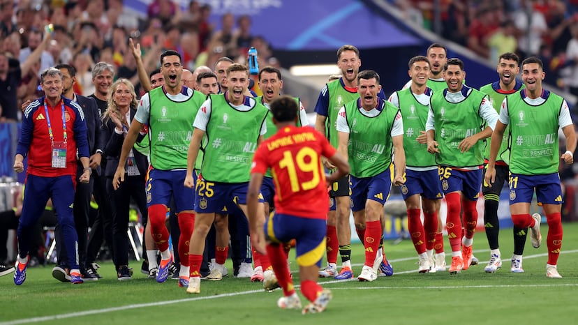 Lamine Yamal levanta la mirada y ve a lo lejos la portería. Hay tentaciones a las que uno solo se puede resistir si no sabe de ellas. Obsesiones que uno sobrevuela porque no mira abajo. A los 16 años lo que quieres lo tomas, sobre todo si llevas pantalón corto. Yamal entonces levanta la pelota de un zapatazo perfecto; perfecto de forma literal, perfecto de tal manera que no podía ir ningún centímetro más a la izquierda ni más la derecha, ni más arriba ni más abajo. A veces salen disparos así. A veces uno los ejecuta en escenarios legendarios y momentos inolvidables, y se convierten esos disparos en disparos inmortales que se quedan en el imaginario popular. Ese gol del chaval de Esplugues de Llobregat se ha quedado ya. Hay victorias con gol y victorias sin gol: España llega a la final de la Eurocopa a lomos del mejor gol del campeonato.