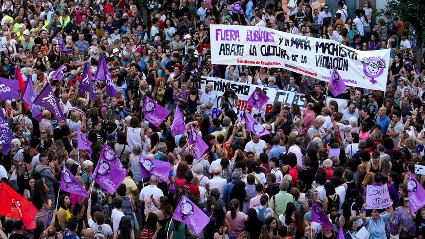 La decisión de Rocha y los presidentes de las territoriales se conoció por la noche, tras una jornada en la que cientos de personas se congregaron en el centro de Madrid —unas 5.000, según los organizadores—. Lo hicieron movidas por el beso no consentido que le plantó el presidente de la federación a la jugadora Jenni Hermoso. “Jenni, hermana, aquí está tu manada” o “no es un pico, es una agresión”, cantaban a voz en grito en las calles de la capital.