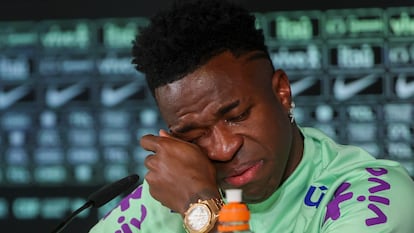 La visita de Brasil este martes al Bernabéu para enfrentarse a España (21.30, La1) empezó a gestarse en mayo del año pasado en Mestalla, en el partido que Vinicius detuvo para señalar a las personas que le gritaban insultos racistas desde la grada. Aquella tarde hubo un momento después de la parada en el que al brasileño se le llenaron los ojos de lágrimas. Dudó si irse del campo. Carlo Ancelotti, el entrenador, le preguntó si se encontraba en condiciones de seguir, y él escogió quedarse. Este lunes, en la víspera del partido, Vinicius compareció ante los medios con el escudo de Brasil en la sala de prensa de la ciudad deportiva del Real Madrid, habló sobre el racismo que lleva meses sufriendo en España y terminó con lágrimas similares a las de aquel día.