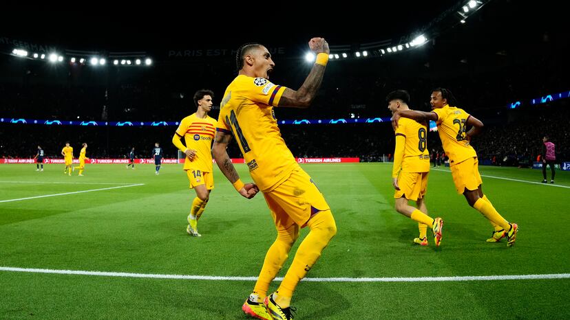 Raphinha ha adelantado al Barcelona en el Parque de los Príncipes ante el PSG tras una buena jugada de los de Xavi. Lewandowski condujo el balón en el medio campo, lo abrió a Lamine Yamal, que centró con el exterior. Donnarumma metió el puño tarde, hizo un mal despeje y el balón le quedó al extremo brasileño, que embocó la pelota en la red.