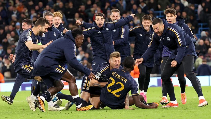Lo del Manchester City-Real Madrid tiene ya el carácter de saga legendaria, después de tres eliminatorias seguidas entre los dos últimos campeones, resueltas todas de maneras diversas, extremas, angustiosas y emocionantes. Una remontada increíble en una prórroga, una goleada de época y una tanda de penaltis en el Etihad, con la que el Madrid alcanzó de nuevo las semifinales de la Copa de Europa, donde le espera el Bayern de Múnich. El último lanzamiento de Rüdiger coronó una función de resistencia extrema que llevó el duelo más lejos que nunca en una noche que premió una despliegue gremial contra natura de un equipo construido para atacar, pero que resistió como uno pequeño un asedio incesante.