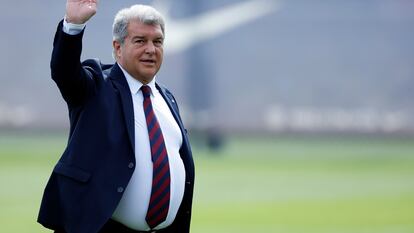 Aunque la pelota llegó botando desde el VAR, el disparo de Laporta se escapó por la puerta Maratón de Montjuïc cuando quiso convertir una jugada del clásico en el gol que explica la Liga.