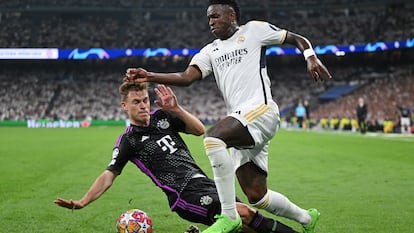 Y todo había empezado extraño, con olor de marea baja. Con el Bayern de cordero blanco en un infierno insoportable. ¿Lo hacen adrede o no? El Bayern se presentó los primeros 45 minutos en Madrid tan débil y aparentemente vulnerable que una mente retorcida podría pensar si todo obedecía a la táctica perversa que fundó Muñeco Gallardo en River Plate, cuando dijo que su equipo había estado jugando mal los últimos meses para despistar al contrario antes de una final. ¿Estaba el Bayern, eterna bestia negra alemana, factoría de victorias despectivas, jugando a las ficciones con el Real Madrid? No lo parecía. Cuando un equipo regala el balón y, por tanto, redobla el esfuerzo (unos hacen correr el balón, otros corren detrás de él) es porque tiene claro qué hacer cuando lo tenga. Pero el Bayern no tuvo claro nada en el Bernabéu. Solo tuvo claro que es el Bayern, y que a veces en la vida hay cosas que se consiguen por ser quien eres. Porque los rivales tienen más respeto al pasado que al presente, y el pasado del Bayern es lo suficientemente terrorífico como para no pensar que pueda asomarse el presente. Lo hizo en el 68 con un zarpazo desgarrador de Davies a pierna cambiada como Gvardiol porque hay gente que espera toda una eternidad a hacer el mejor disparo de su vida. Un estadio tan bonito, un rival tan legendario: cómo no disparar con la pierna mala como si te la hubiese atornillado Dios en el descanso.