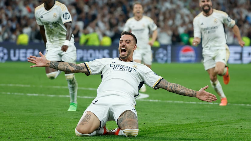 Benzema, Rodrygo y Joselu. La fábrica de milagros del Madrid subió a su infinito santoral a su último héroe. Joselu, de 34 años y 42 días, cedido por el Espanyol a principios de curso después de dos descensos consecutivos. ¿Alguien da más? “Uno se hace futbolista para vivir lo que he vivido en el pasado. El trabajo me ha llevado aquí. Seguro que muchos dudarían a inicios de temporada. La insistencia, la confianza del míster, de mis compañeros… El trabajo da sus frutos. Con todas las lesiones, jugar una final de Champions son palabras mayores”, trató de explicar el delantero después de otra noche inexplicable en el Bernabéu, en la que el Madrid alcanzó su 18ª final de la Copa de Europa. “Yo tampoco esperaba que esta plantilla hiciera esto. Llegar a la final es un éxito”, aseguró un Carlo Ancelotti eufórico.