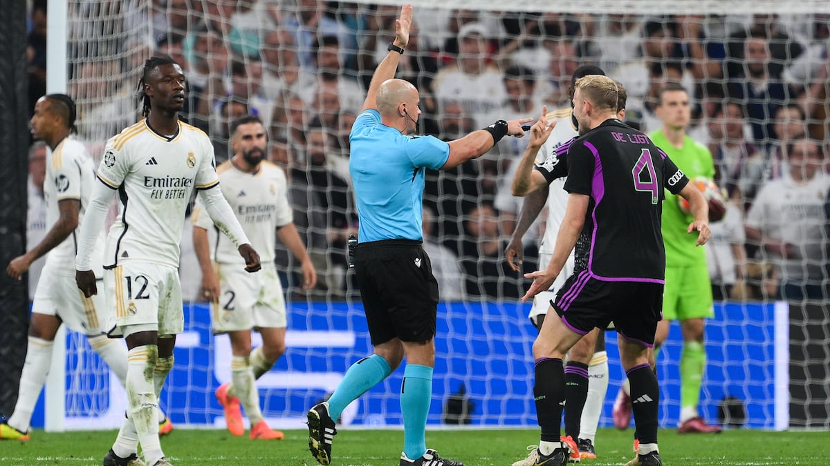Los árbitros reconocieron el error nada más acabar el partido. Con los jugadores del Real Madrid celebrando la enésima remontada en Champions —sobre la bocina, Joselu marcó en tres minutos (en el 88 y el 91) dos goles— en un Bernabéu en éxtasis, el linier que levantó el banderín en el minuto 103 se acercó al banquillo del equipo alemán y les pidió disculpas por no haber dejado terminar la jugada. “El linier me dijo: ‘Lo siento, cometí un error”, contó De Ligt en la zona mixta. “Tenemos reglas en el fútbol, y la regla dice que si no es un fuera de juego claro —y no lo era, y he de decir que no he visto aún si era o no era fuera de juego—, tienes que dejar jugar. Y si en el último minuto pitas de esta manera, creo que es un gran, gran error”, razonó.