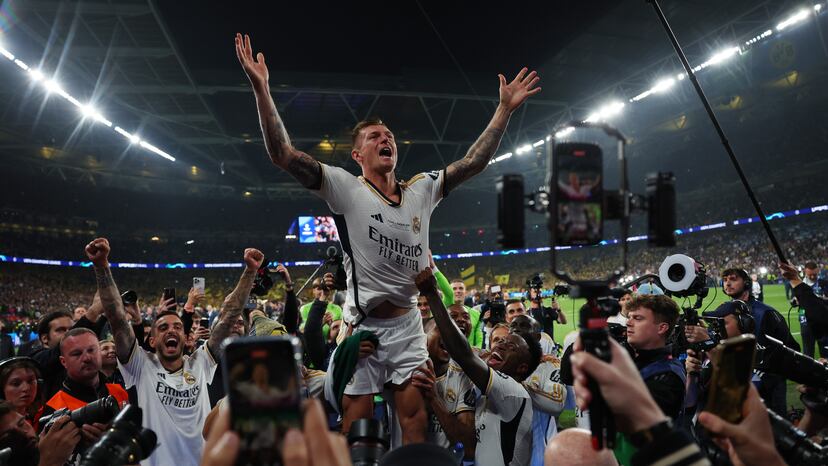 Después de despedirse del Madrid (del fútbol lo hará en la Eurocopa) con su sexta Copa de Europa, Toni Kroos volvió a repetir, más cargado de razón que nunca, que “la idea era irse así”. “No hay mejor manera. Pero tengo ganas de hacer otra vida. Aunque los momentos con los compañeros y el juego los echaré de menos. Pero yo me quería ir así”, insistió el alemán, aclamado cuando fue sustituido en el minuto 85 y en los festejos. “He disfrutado mucho la última semana, ha habido un ambiente espectacular. Pero también tenía que poner la concentración en la final. No ha salido bien la primera parte, pero da igual, este equipo siempre sigue y ante nosotros hay que meternos goles”, advirtió.