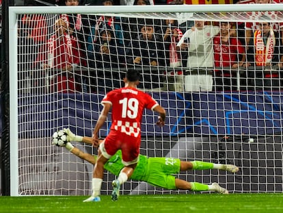 Un diálogo se estableció en Montilivi de portería a portería. Ni el Girona ni el Athletic Club ahorraron esfuerzos. El ataque de uno era la respuesta de otro. Y quien llevó la batuta fue Paulo Gazzaniga, el héroe y salvador de su equipo, la pesadilla para su rival. Paró dos penaltis, aunque tres disparos —el segundo lanzamiento desde los once metros tuvo que repetirse por órdenes del VAR— a tres jugadores diferentes: primero a Berenguer (minuto 28), y después de forma consecutiva a Iñaki Williams y Ander Herrera (minuto 58). “Uno, cuando se enfrenta a un penalti, como portero siempre piensa que lo va a parar. Estuvimos viendo con el entrenador de porteros los penaltis y esta vez se dio bien”, contó el guardameta tras el encuentro. Se convirtió este domingo en el primer portero en toda la historia de la Liga en neutralizar dos penaltis al Athletic. El público gironí se abandonó al humor. “¡Penalti! ¡Penalti!”, repitieron todo el encuentro en cada falta. Y al final las tornas se invirtieron, y fue el Girona quien disfrutó de un penalti. Padilla, excelso todo el encuentro, no pudo contra Christian Stuani, que marcó el gol de la victoria en el 99 para dejar atrás la desventura del Girona (2-1). Un encuentro accidentado, lleno de intensidad y buen juego en el que ambos equipos eran conscientes de su importancia. Para el conjunto de Míchel, por llevar seis partidos sin ganar y solo conocer la derrota en Champions; para el de Valverde, para seguir con su racha de seis encuentros sin perder. Pero la balanza se giró a favor de los locales, y la agonía del Girona llegó a su fin.