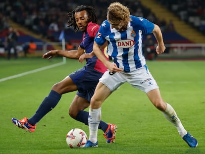 Lamine se sentó en el palco del Reale Arena junto a Deco y Bojan. “Nos faltará un jugador importante, pero al final tenemos otro jugador, Fermín que entrará y que también ha jugado bien en los últimos partidos”, expuso Flick. Apostó por un falso extremo el técnico alemán. Antídoto para contrarrestar el vértigo de la Real, insuficiente en cualquier caso para desequilibrar a los muchachos de Imanol Alguacil. Flick buscó corregir tras el paso por los vestuarios: Dani Olmo reemplazó a un dolorido (una vez más) Frenkie De Jong.