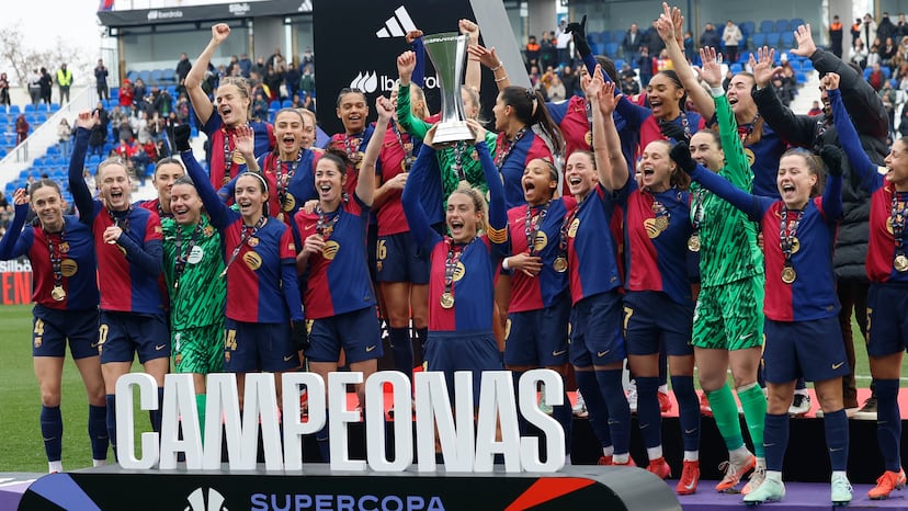 El Madrid, que trató de agitar el partido con la entrada de Eva Navarro, Athenea y Abelleira, no fue capaz de tirar a portería con peligro en la segunda final de su breve historia hasta el minuto 76, cuando Coll salvó un mano a mano ante Caicedo. Alexia, titular por primera vez en una final dos años y medio después y muy cerca de su mejor versión, cerró la goleada de un Barça de época que atrapó hoy en Leganés con el estadio casi lleno su primer título del año. La propia Putellas levantó el trofeo que le entregó Sergio Merchán, vicepresidente de la Real Federación Española de Fútbol, después de que el mandamás federativo, Rafael Louzán, no asistiera a la final por el temporal que impidió que su vuelo despegara desde Galicia esta mañana para ver in situ el triunfo del Superbarça, un equipo que parece no tener rival en España otra temporada más.