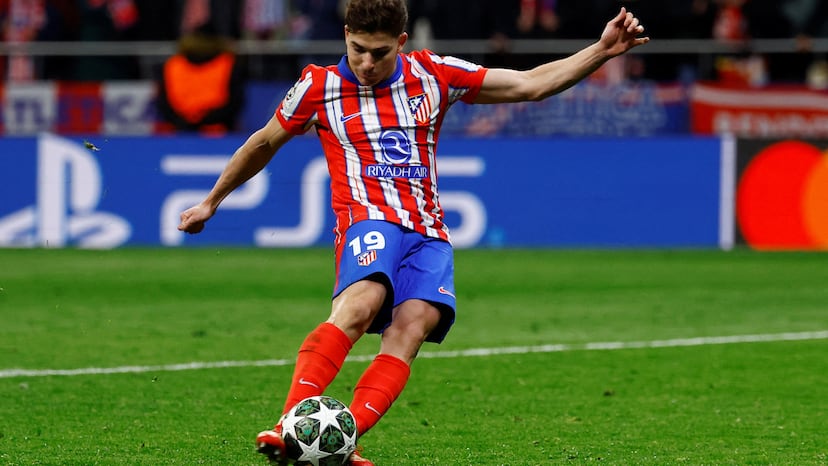 Simeone sobre el cruel resbalón de Julián Alvarez en el penalti: “Quiero creer que el VAR vio que tocó el balón”