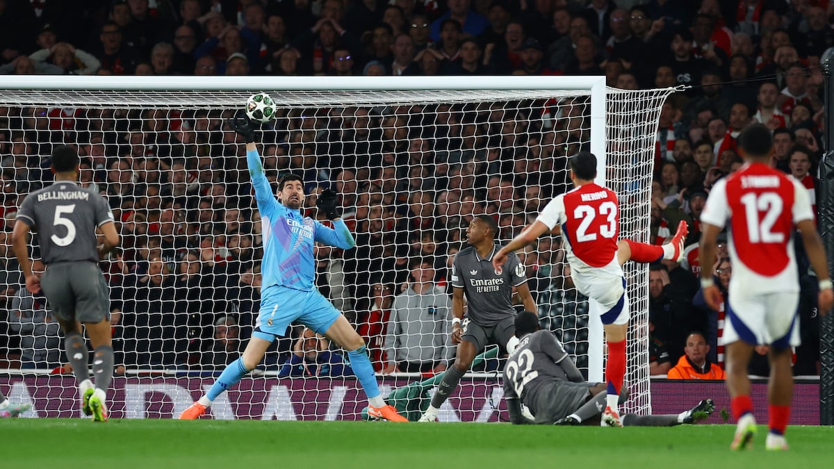 El Madrid languidecía y solo encontraba un madero al que agarrarse: Thibaut Courtois, el sostén hasta que fue fulminado en dos faltas ejecutadas de forma categórica por Declan Rice en 12 minutos de fuego del Arsenal. “En la primera”, analizó el belga, “quizá podía haber puesto otro hombre más. En la segunda no la puede pegar mejor. A veces, son faltas innecesarias donde no hay peligro, no hay que hacerlas”, se quejó. Rice fue el segundo rival en la historia del Madrid en hacerle dos goles de falta directa en la Copa de Europa. Para encontrar al primero hay que viajar hasta 1956, con Ernst Happel. Y habría que rebobinar mucho en la carrera del belga para verlo superado en dos golpes francos de esa manera. Pero, aún así, en él empezó y acabó un triste Madrid.